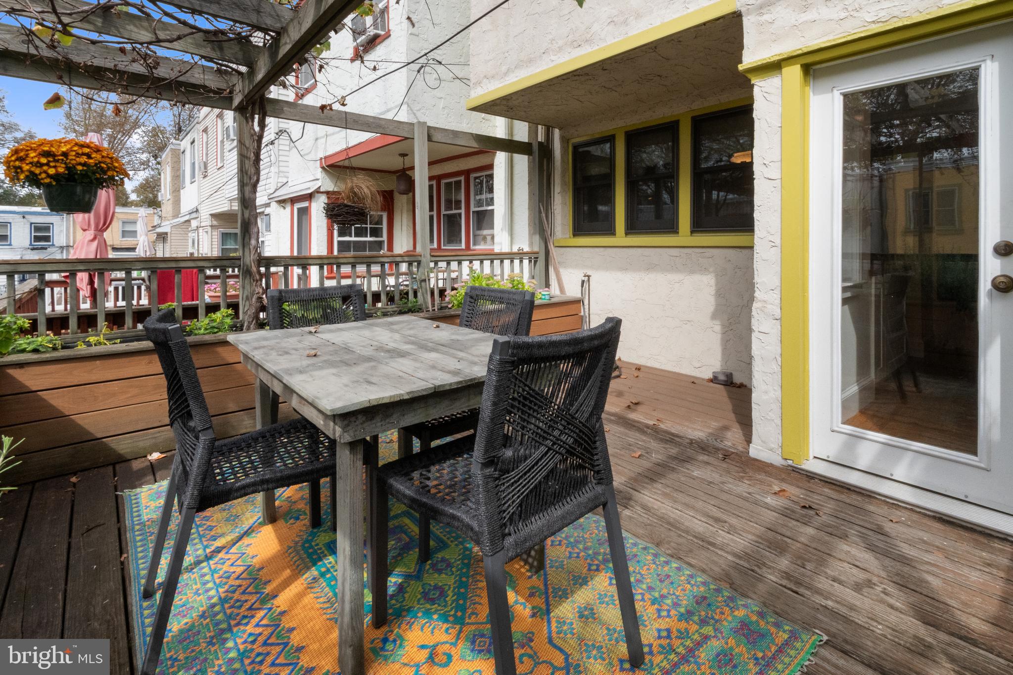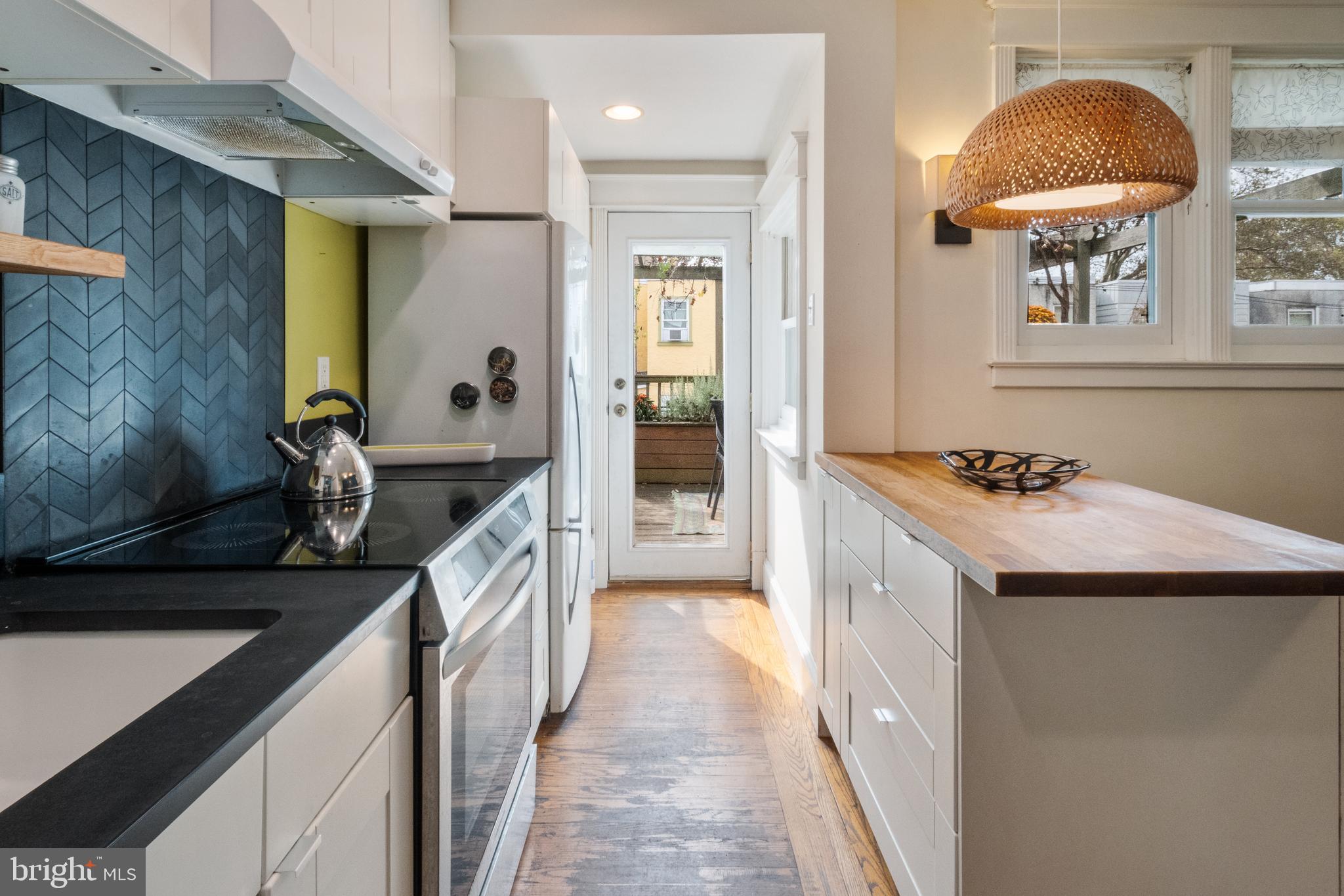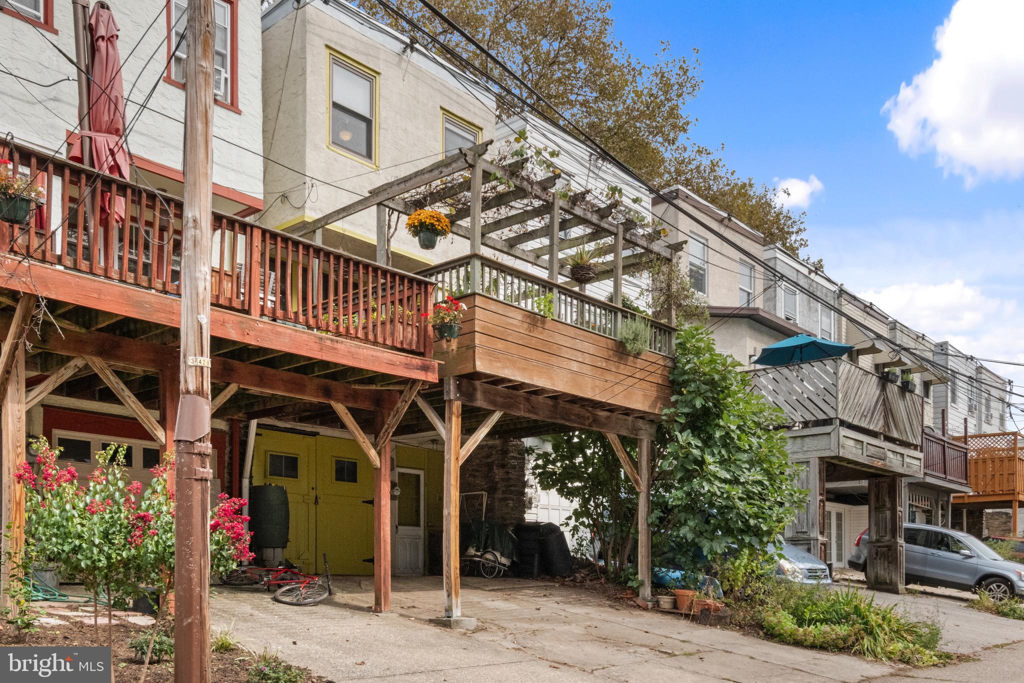 Step in under the sycamore canopy and discover this lovely porch front row home overlooking the only block of Osmond St in the city! The bluestone steps and walk lead up past a layered shade garden to an open covered porch, screened by mature Japanese maple trees. The porch offers plenty of space for outdoor seating and the elevation above the sidewalk, long season foliage, and copper rain chain contribute to high levels of enjoyment in all weather. Upon entering the house, you are greeted by an open floor plan, original hard wood floors and loads of light. One large original window looks out over the front walkway, while the dining room, kitchen and bedrooms all have newer windows. The original galley kitchen was opened to the dining room by removing a wall and adding a large island with butcher block top and wide drawers. The kitchen has a newer induction top electric stove with convection, tiled backsplash, a deep farmhouse enamel sink with tall sprayer faucet, and black Richlite countertops. There are plenty of upper and lower cabinets as well as a pegboard for hanging all your pots and pans, a dishwasher and retro refrigerator with bottom freezer. The recessed lighting and full glass door bathe the kitchen in light. The kitchen door opens to a spacious deck with built-in garden boxes as well as a beautiful pergola with native honeysuckle vine and mature concord grapevine, plus loads of room for hanging plants. The basement level includes the laundry room with washer, dryer, and utility sink. A brand new boiler is being installed the week of 10/6, and the hot water heater which is 1 year old. The original garage, accessed off the alley, has been utilized as a workshop and storage space but could be easily returned to garage use. Outside there is driveway parking for 2 cars. The second floor has 2 large bedrooms with hard wood floors and ample closet space. The bathroom has a beautiful hexagonal tiled floor in varying shades of gray/green along with an updated vanity, original built-in medicine cabinet, newer toilet, and original tub shower. The original subway tile wainscot has been accented with a new green ceramic tile surround. The whole bathroom is filled with light from the operable skylight window. East Falls is a wonderful neighborhood which offers close proximity to both center city and the Wissahickon Valley portion of Fairmount Park. From Osmond Street it is a short walk to the Nouvaux Market, Falls of the Schuylkill Library, the East Falls Farmers Market, and the Schuylkill River Trail. The Fallser Club is a growing local music venue, and the neighborhood has many popular coffee shops and restaurants including Billy Murphy's Saloonery, Fiorino, Vault+ Vine, and Thundermug. The home has been pre-inspected. Come find your new home in the best community, on the best block in Philadelphia!